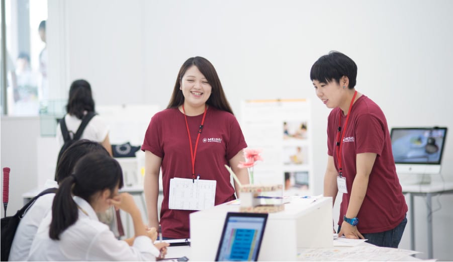 大学をあげて受験生に向けて明星大学を紹介する「OPEN CAMPUS」。毎年開催されるこのイベントでは、模擬授業や施設見学をはじめ、教員や学生と出会い、明星デザインの雰囲気をリアルに感じることができます。デザインに関心のある多くの受験生が来校し、楽しいキャンパスを満喫しています。