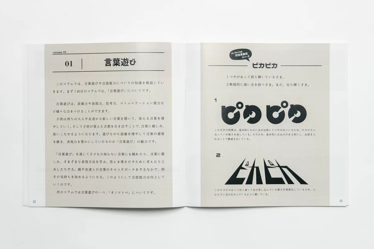 このような経緯から、言葉遊びと作字を活用した子供の言語能力を向上させる本「この文字どっちもじ?」を制作した。言葉遊びは語彙力や読解力、表現力を育むことができる。図形や表現によって創作される文字である作字は、文字を書くことが認知能力や記憶力、思考力を育むことができるため有効だと考えた。