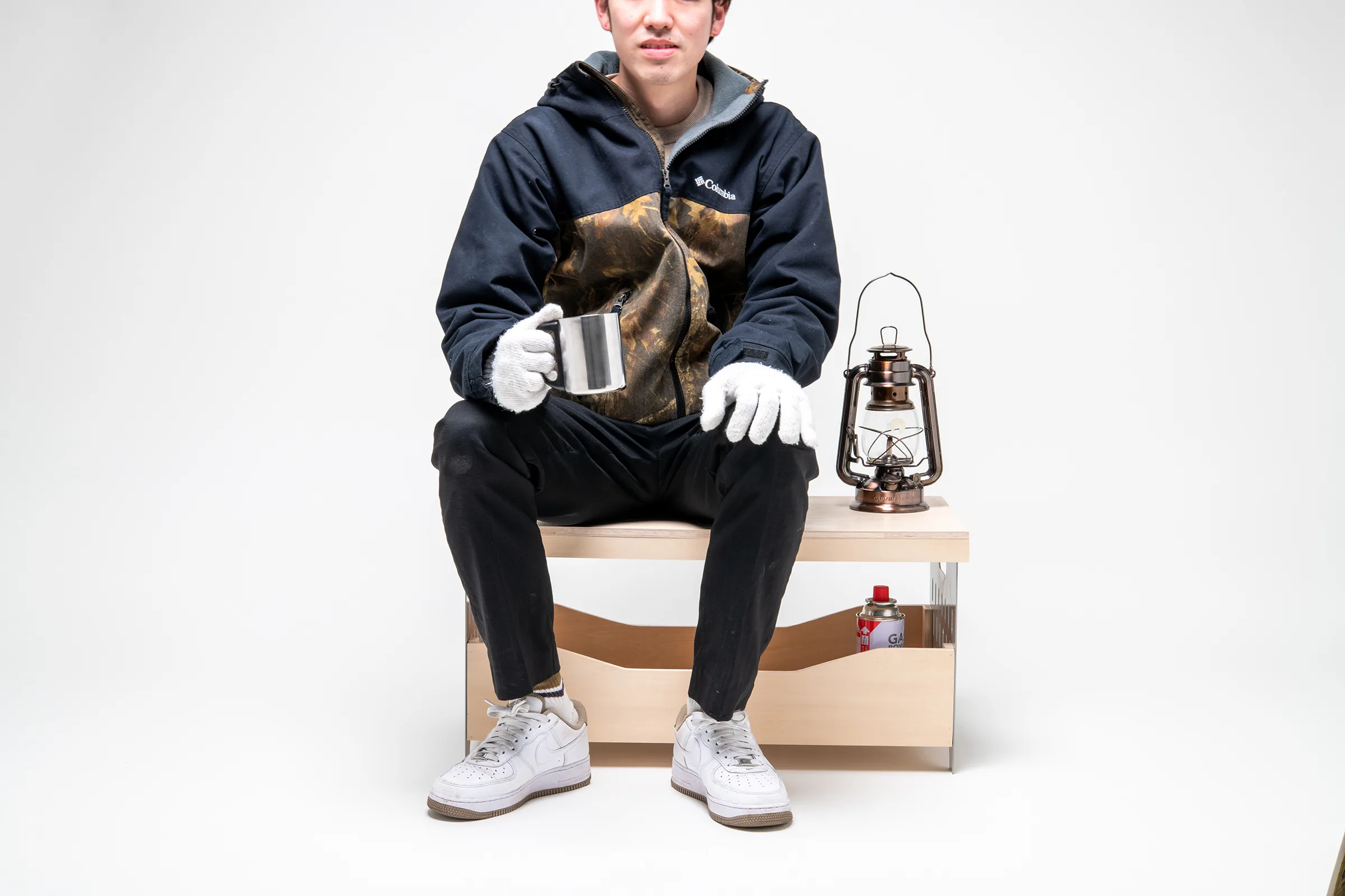 キャンプ場などでフィールドワークを行い、キャンパーの行動を観察してみると、多くのソロキャンパーは、荷物を減らすために収納ケースをテーブル代わりに使用していることや、その場合、収納ケースの蓋をテーブルの天板として使用していることがわかってきました。そして、収納ケースの蓋をテーブルの天板として使用する場合、「蓋をよけずには中のモノを取り出せない」という問題があることが判明しました。