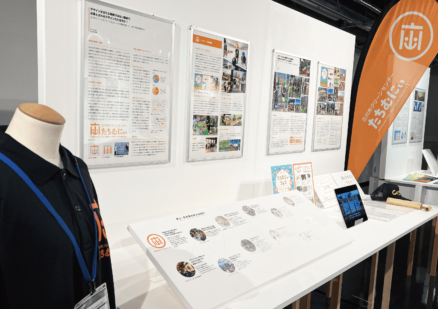 3年生の授業で「立川市クリーンセンターたちむにぃの愛称ロゴ提案」に取り組み、自分たちのチームの案が採用され、実際に使用されています。その際、ユニークな職員の方々に出会ったことから市役所の仕事に興味を持ち、2023年6月からたちむにぃでインターンをさせていただきました。その際、明星デザインで日頃から叩き込まれている「色と形だけがデザインではない」ということに対し、どのようなデザインの力がデザインを主たる業務として行っているわけではない、市役所のような仕事で活かされるのかを自分たちが実験台となり研究を行いました。