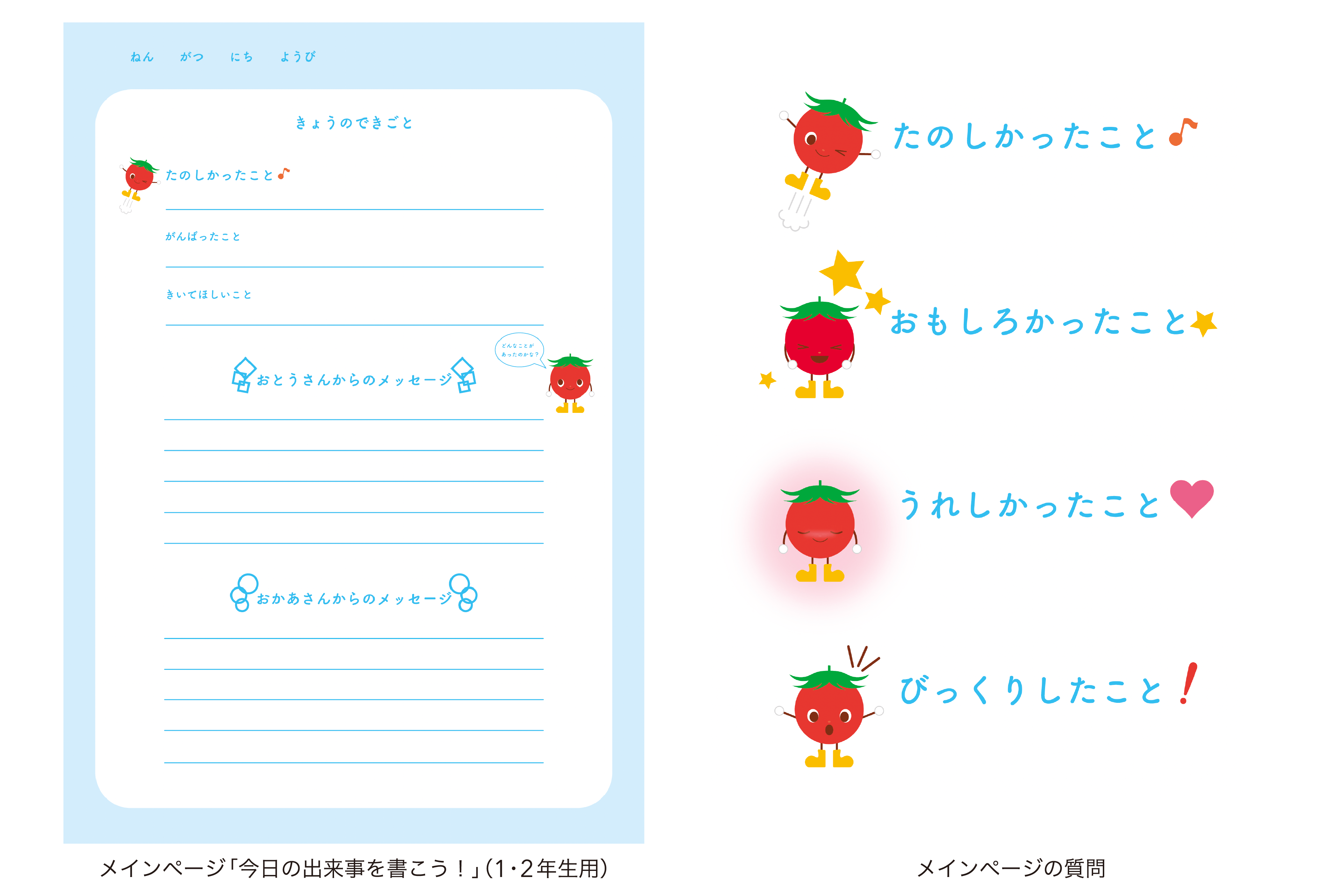 ドリルは、小学1・2年生用、3・4年生用、5・6年生用の合計3種類を用意した。学年が上がるにつれて、両親にネガティブな質問などもできるようにしており、親子でより深い対話ができるようになっている。