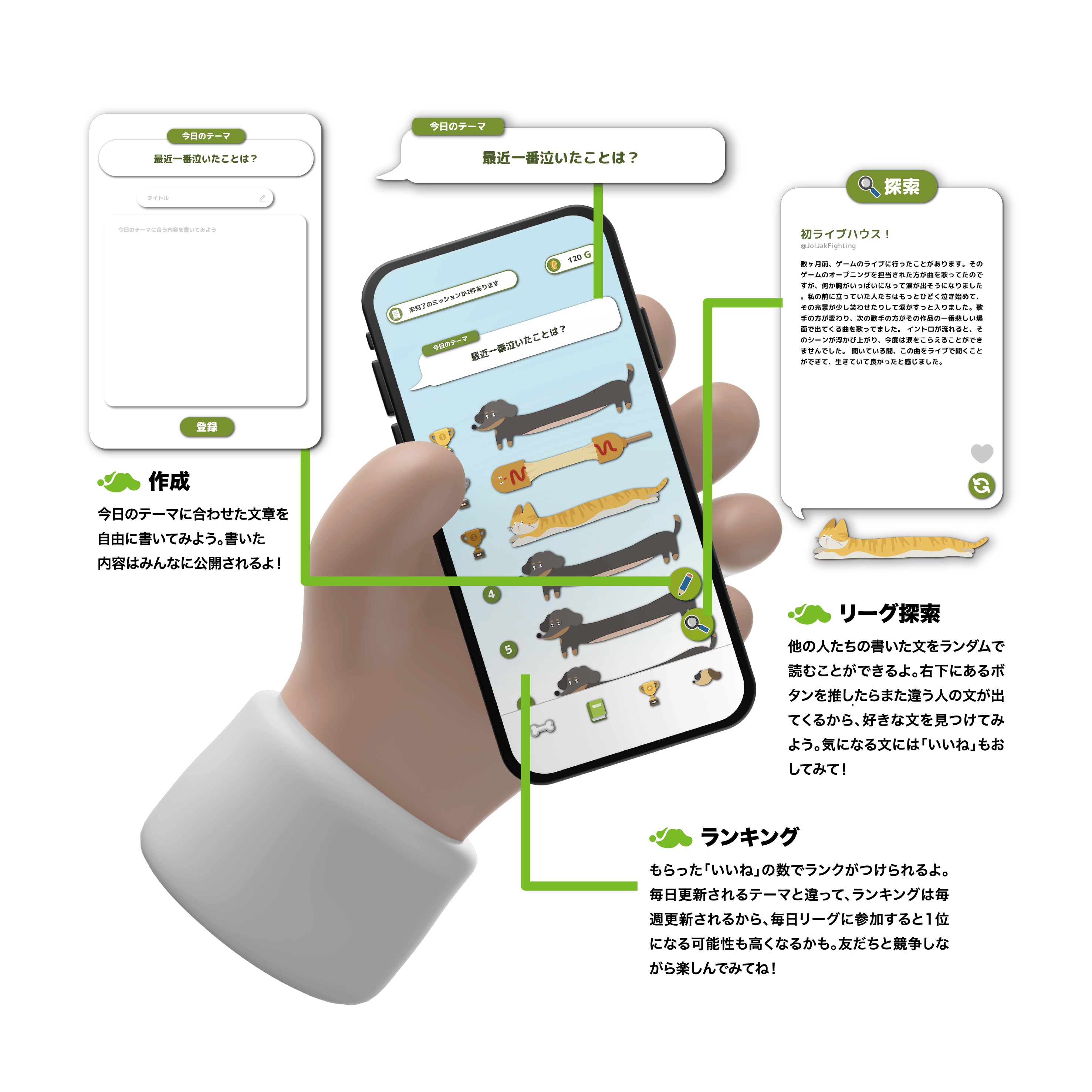 調査・分析を進む中で、既存の日記作成方式は自主的に提供する面白さ要素が不足していることが分かった。