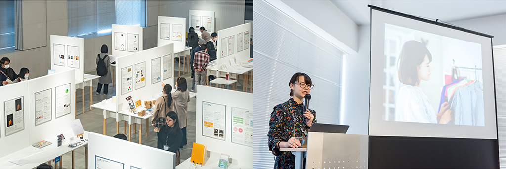 「研究報告展」と銘打っているように、本展に向けて学生たちは、大学で培われたデザイン力——企画力(分析力・発想力・総合力)×表現力(美的構成力・プレゼンテーション力・コミュニケーション力)——を発揮しながら、日常のなかから解決するべき課題を見いだし、その解決策となる企画提案を「展示」と「プレゼンテーション」の両輪で発表します。この点が、作品展示が主体となる他の美術大学やデザイン系学部の卒業制作展とは異なる、本展の大きな特徴です。