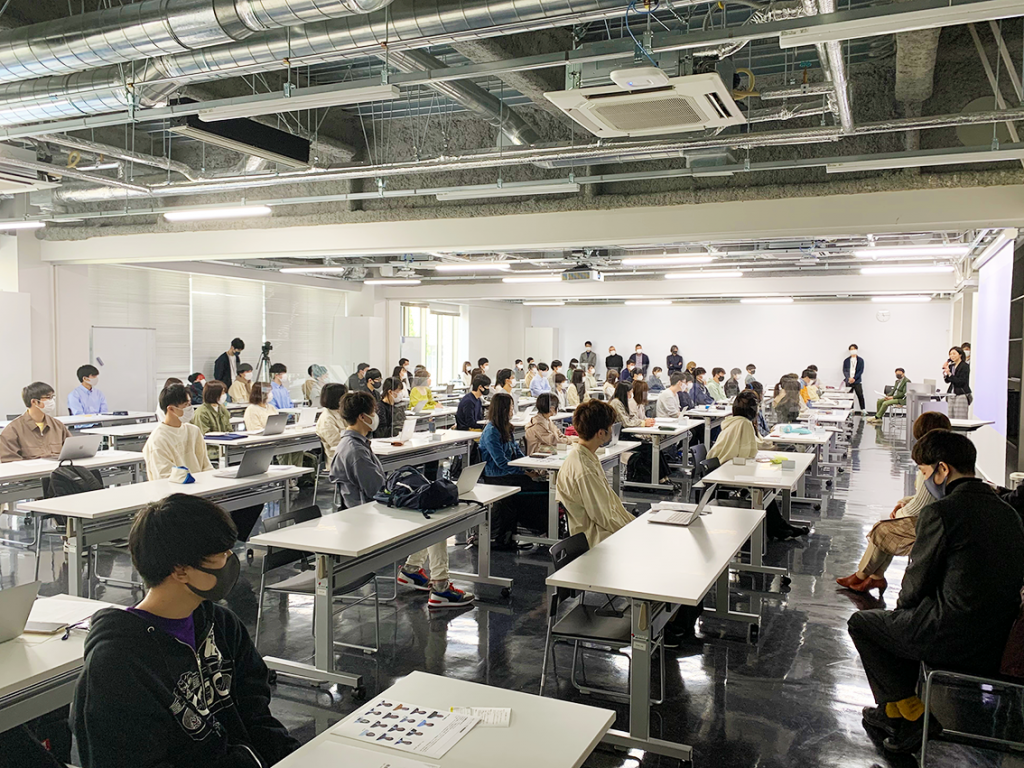 2021年度は、必修科目で1教室に100名以上の学生が集まる科目、または、特別な事情がある科目のみが非対面となりました。それ以外の約80%の授業が対面で行われています。特に、実技科目(講義科目以外の演習・実習科目)はほぼ対面授業となっています。