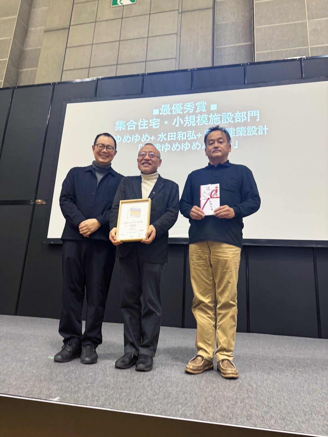 エコデザイン研究「持続可能なくらしをデザインする」の集大成として企画をして、総合プロデューサーとして完成させた「9坪のオフグリット民泊」が、「日本エコハウス大賞2024」において最優秀賞/集合住宅・小規模施設部門を受賞しました。この賞は、脱炭素時代にふさわしいエコ住宅に対して付与される賞です。