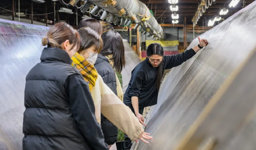 本講座の3回目となる「DeXT 2023」では、高校生たちが八王子市の観光資源である日本遺産「桑都物語」をPRするためのテキスタイルをデザイン。7月、8月、12月の全3回にわたるカリキュラムでは、「桑都物語」のリサーチ、デザイン、プレゼンテーションなど一連のデザインプロセスを実践しました。採用されたデザインは、株式会社奥田染工場の協力のもと布にプリントされ、八王子市内の小学生に向けて配布されました。