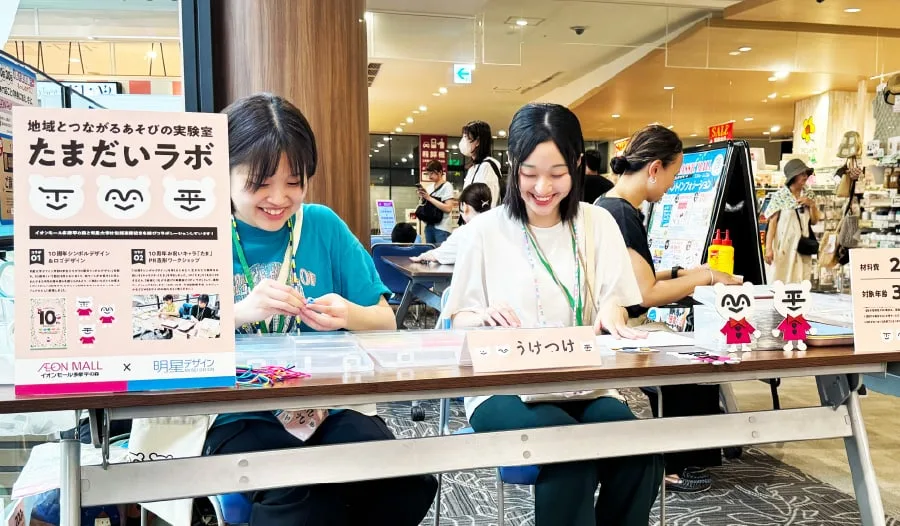 2024年8月、「イオンモール多摩平の森 10周年」の記念シンボルを学生たちがデザイン。周辺環境の調査や取材などを重ね、モールの特徴である「森」や来店者の「うれしい」「たのしい」といったポジティブな気持ちを込めたデザインになりました。また地域性を生かしてデザインしたキャラクターとともに、モール内や駅などさまざまな場所へ展開。8月から10月までは「たまだいラボ」と称しワークショップも実施しました。