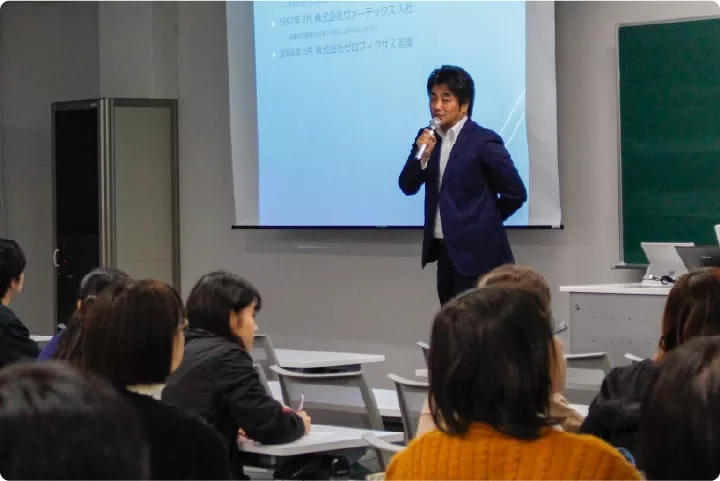 第一線で活躍するデザイナー、プランナー、企業経営者、編集者、ディレクターなどをゲストスピーカーに迎え、それぞれの分野の仕事を紹介します。さまざまな職業で活きている企画力と表現力の理解を通して、社会における自分の役割や可能性を探ります。