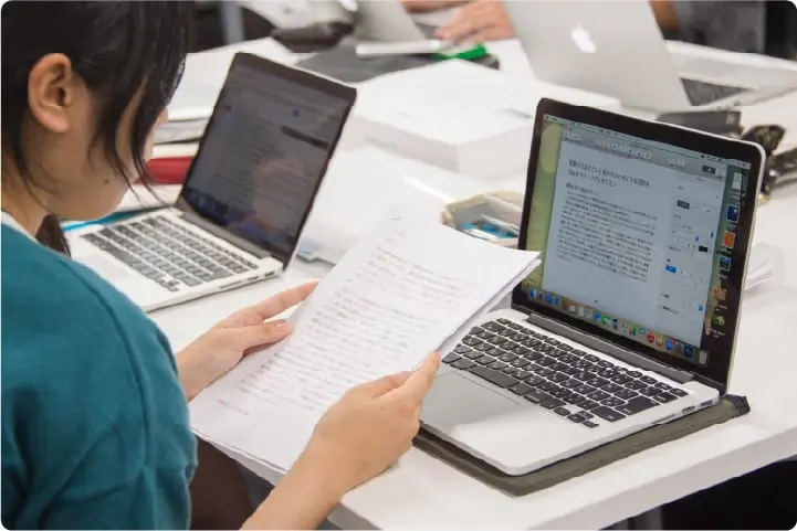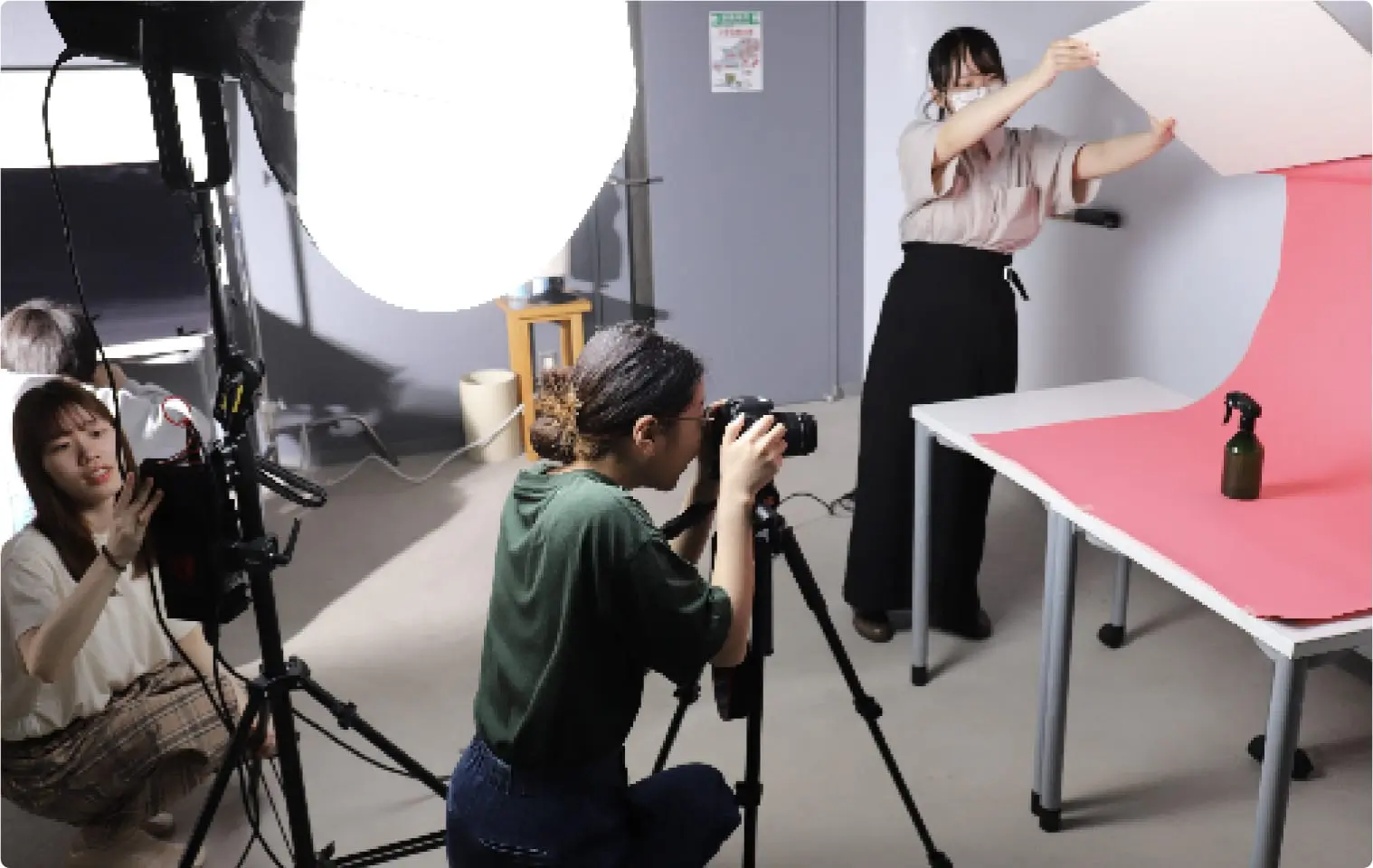 専門共通科目は、専門実践科目に取り組むために必要な、基礎的な知識・技術を学ぶ科目群です。あらゆるデザインの専門分野で共通する、アイデアを他者へ伝えるための方法や技術について、言葉をはじめ、スケッチや図面、写真や試作品など、目的に合わせて適切な伝達方法を選びカタチにする力を身につけます。